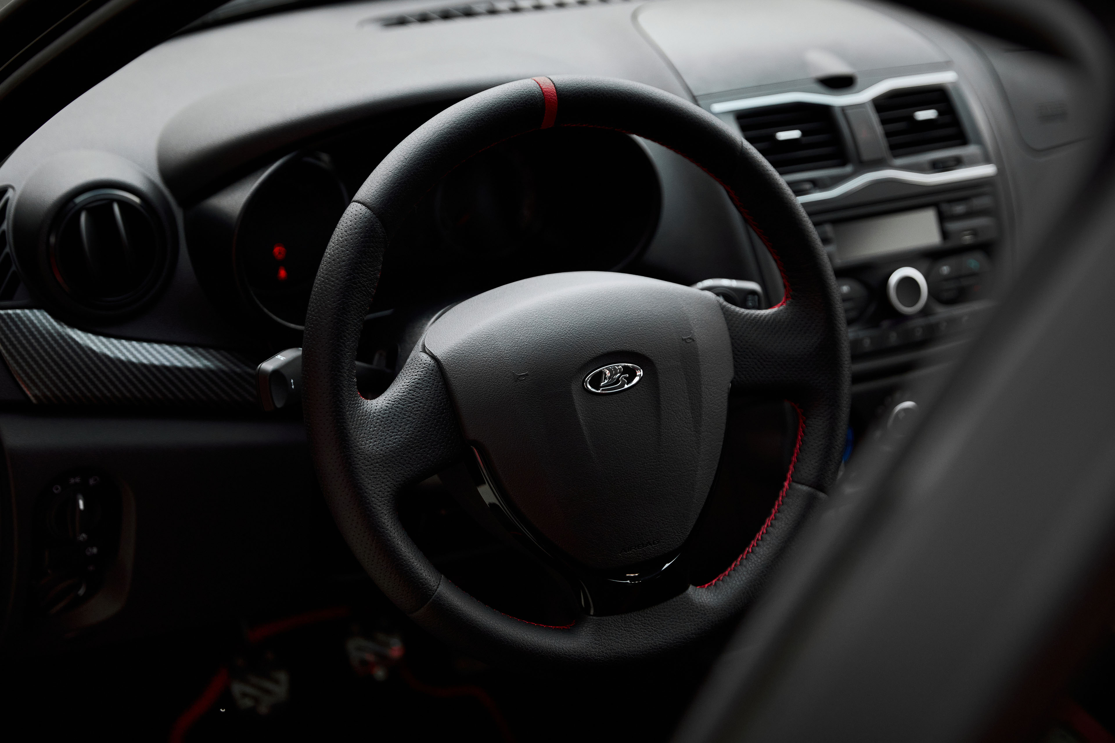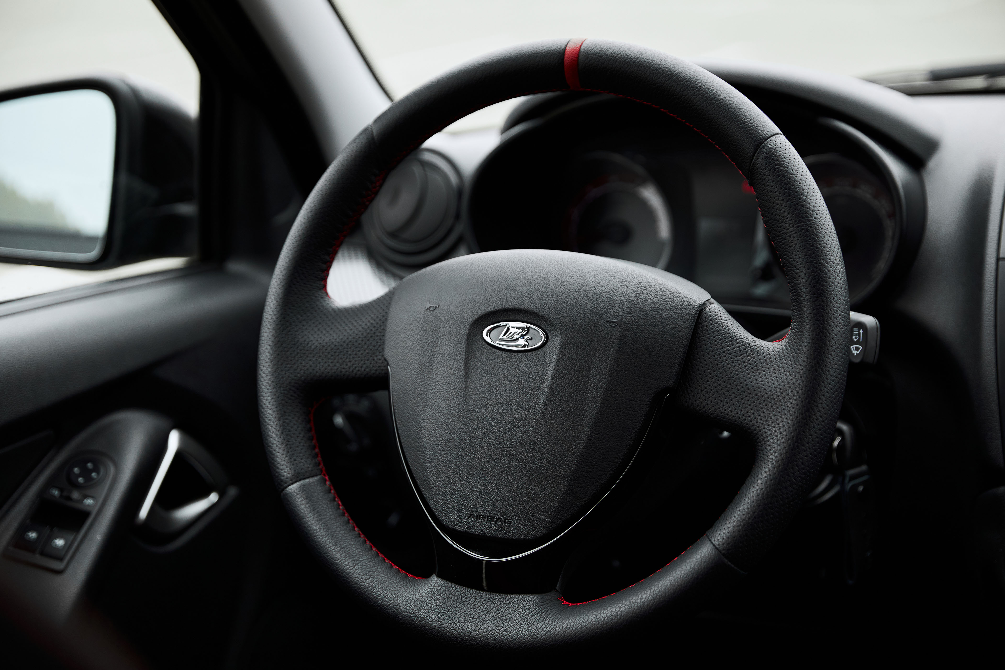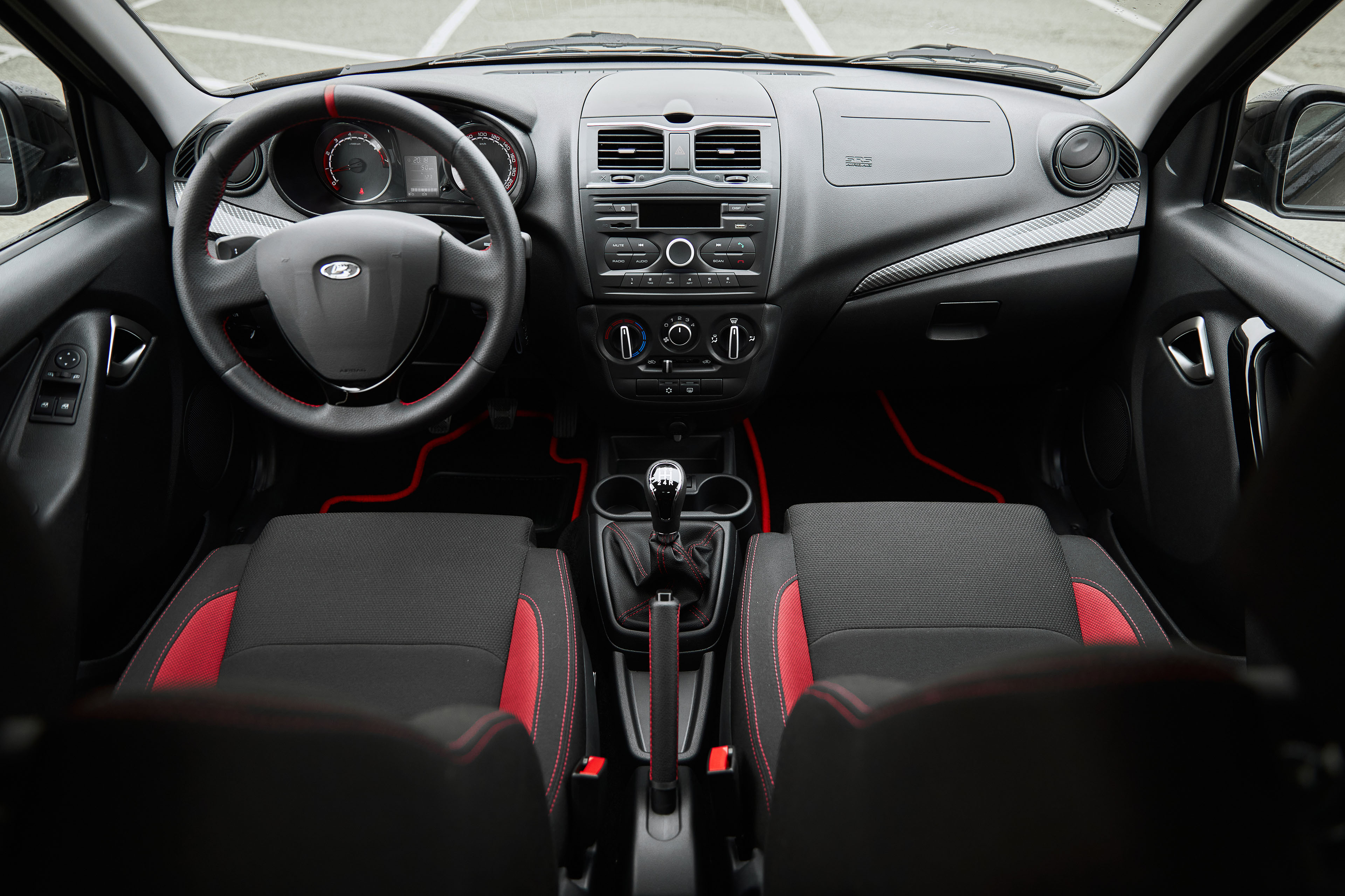 Внутри Granta Sport Liftback продолжает тему спортивности и комфорта одновременно: